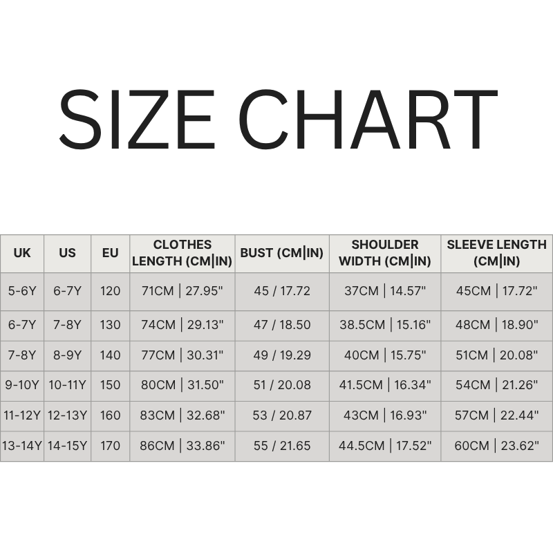 - Verfügbare Größen: 90-170 (5-14 Jahre)