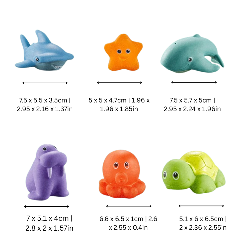 Alle Teile sind leicht, bissfest, hautfreundlich – und perfekt für kleine Kinderhände. Das robuste ABS-Material hält täglichem Spiel stand, lässt sich schnell abspülen und trocknet fix – keine schimmligen Badespielzeuge mehr in der Ecke!