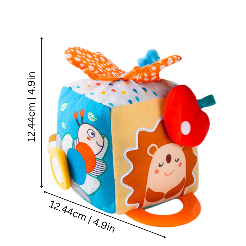 Jeder Würfel steckt voller sensorischer Überraschungen. Babys können drücken, schütteln, streicheln oder an Reißverschlüssen ziehen – ganz ohne Druck, aber mit viel Freude. Dabei trainieren sie Konzentration, lernen erste Anziehbewegungen und entwickeln spielerisch ihre motorischen Fähigkeiten.