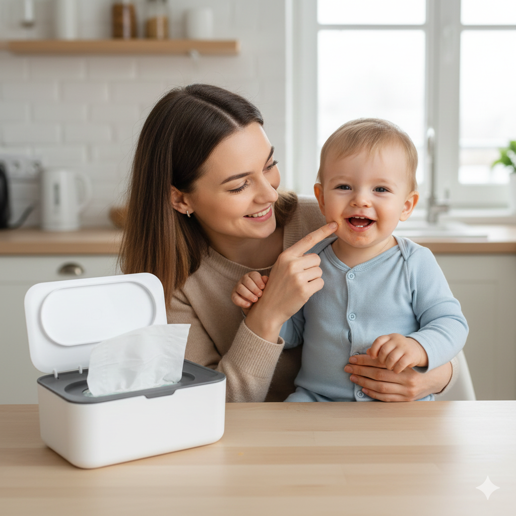 Frischtücher Spender | Praktische Einhandbedienung für Eltern