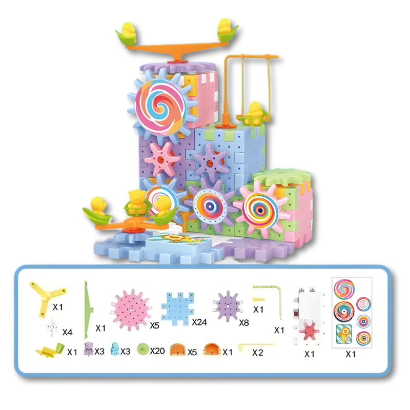 Wecke die Neugier und Kreativität deines Kindes mit Zahnrad, dem elektrisierenden Bausatz, der die Spielzeit in eine Welt aus Bewegung, Farbe und Entdeckung verwandelt, wo jedes rotierende Zahnrad, jeder verbindende Block und jedes praktische Puzzlestück Lernen, Vorstellungskraft und endlosen Spaß für junge Erfinder inspiriert.