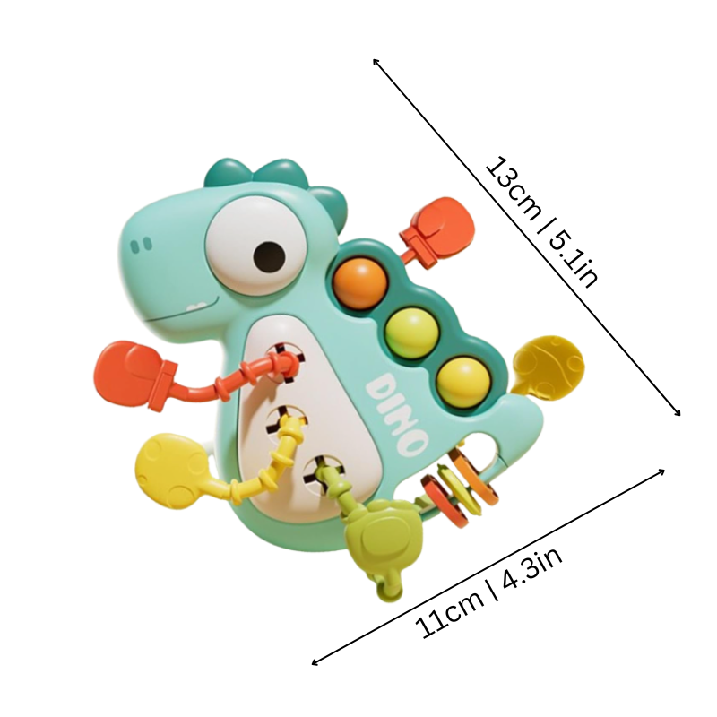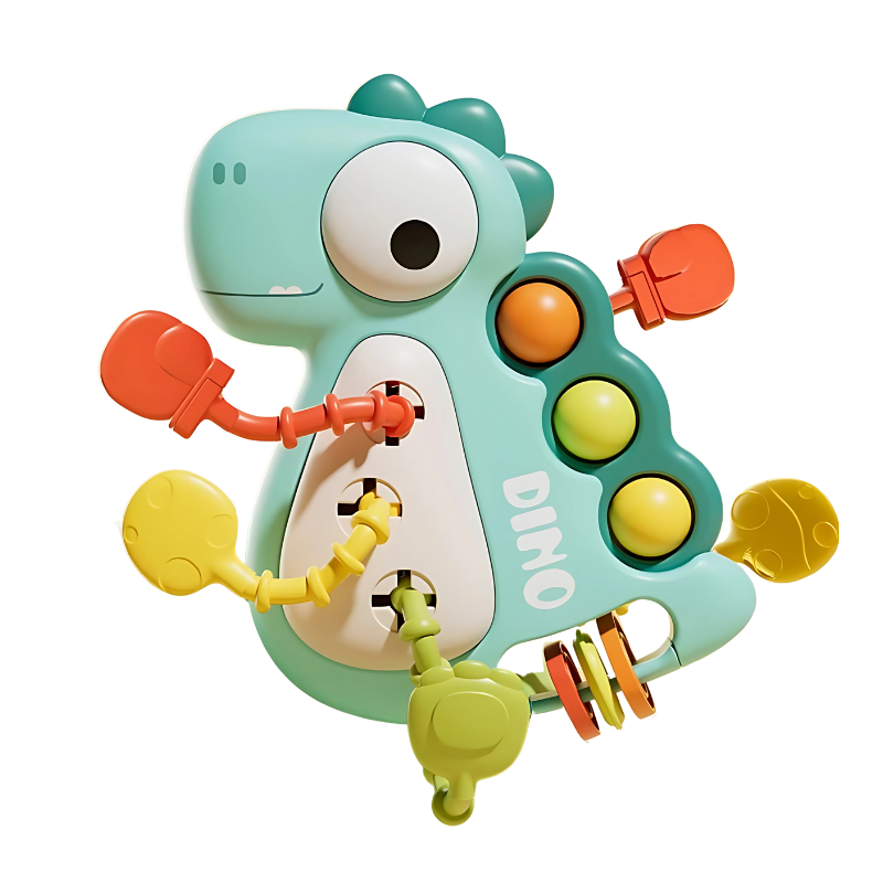 Der Greifsaurus hält kleine Hände beschäftigt und fördert spielerisch die sensorische Entwicklung, Feinmotorik und Griffkraft. Mit Zieh-, Dreh- und Beißspaß lindert er Zahnungsschmerzen und sorgt gleichzeitig für endlose Unterhaltung – in einem farbenfrohen, babyfreundlichen Design.