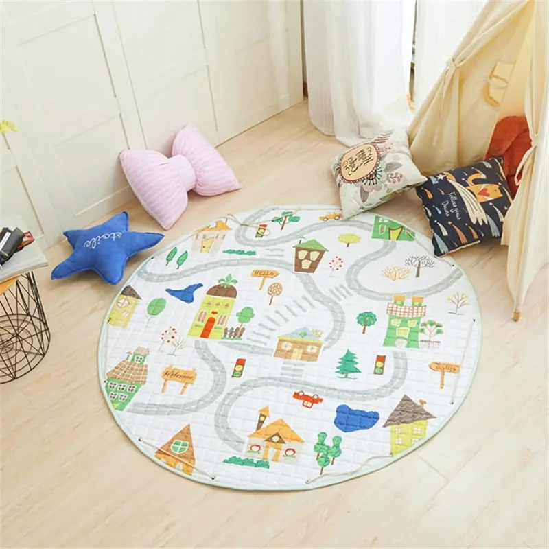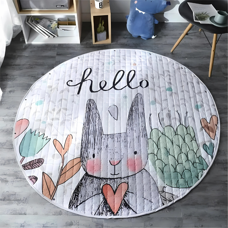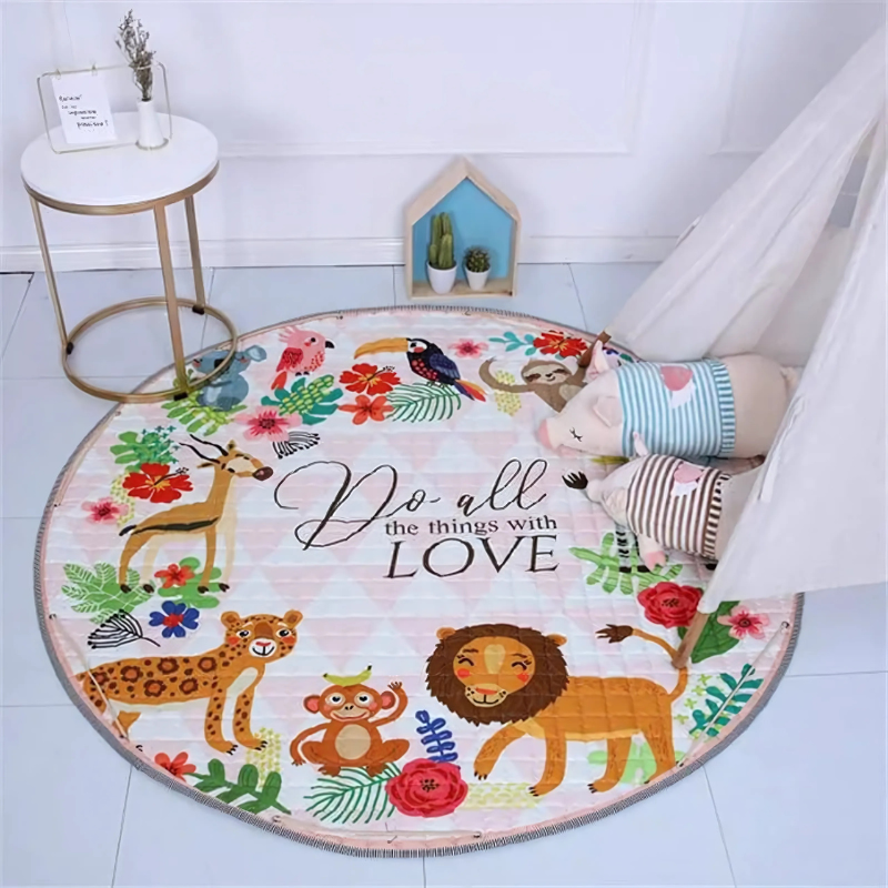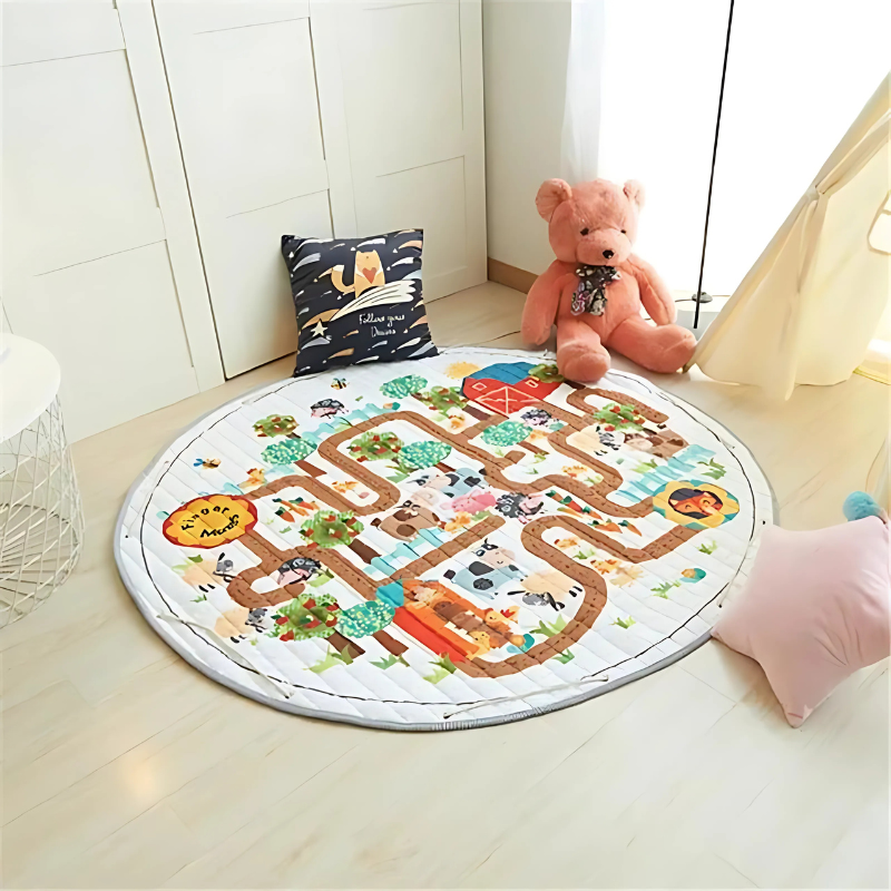 Diese Spielmatte wurde sowohl für Spaß als auch Funktion entwickelt und ist mit einem rutschfesten Boden ausgestattet, der sie auf jeder Oberfläche sicher hält. Der weiche Baumwoll-Polyester-Mix auf der Oberseite fühlt sich sanft auf empfindlicher Haut an, während die gepolsterte Füllung zusätzlichen Halt bietet. Egal, ob Kinder rollen, sitzen oder liegen, sie werden sich immer wohl und sicher fühlen. Und der große, runde Durchmesser bietet ausreichend Platz für mehrere Kinder, um gemeinsam zu spielen.