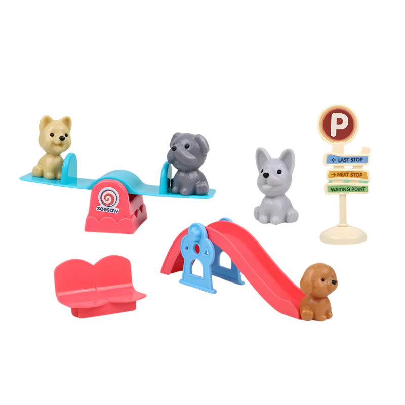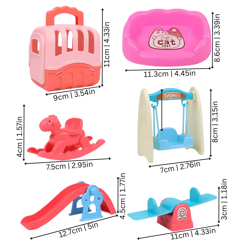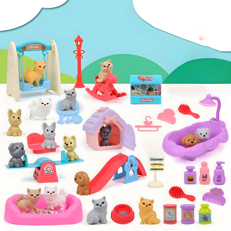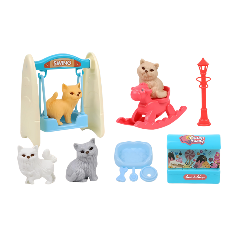 - Verfügbares Set: 8 Teile Hunderrutsche, 8 Teile Blauer Hund, 8 Teile Pinker Hund, 9 Teile Katzenschaukel, 13 Teile Hundebad