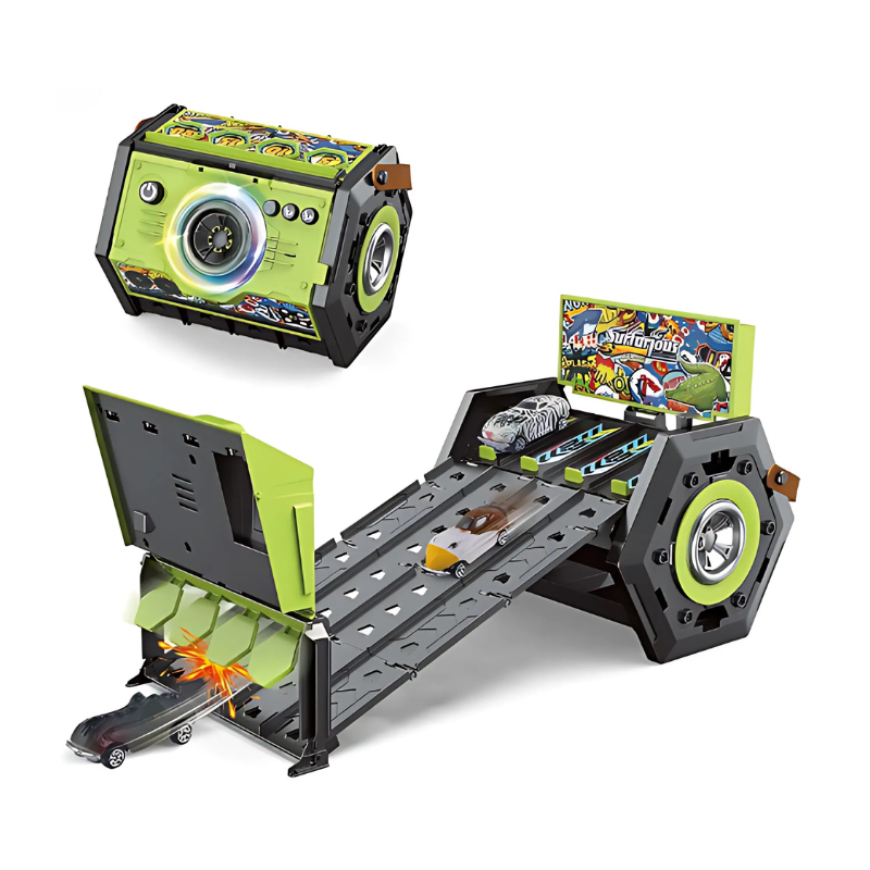 Entdecke die Spannung echter Rennen mit der ReiseRennstrecke, dem ultimativen tragbaren Rennbahnset mit Lichtern und Musik, das die Spielzeit in ein adrenalintreibendes Abenteuer verwandelt. Es inspiriert dein Kind, groß zu träumen und in eine Welt voller Spaß und Entwicklung zu rasen!