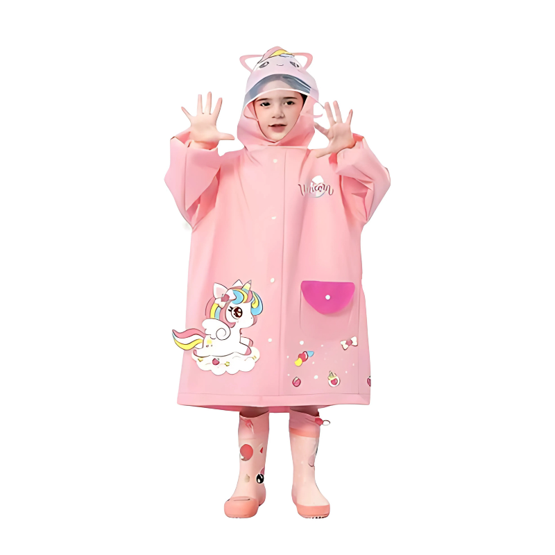 Regenwetter muss kein Stubenhocker-Tag sein. Mit diesem niedlichen Regenmantel können Kinder in Pfützen springen und draußen spielen, ohne durchnässt zu werden. Die fröhlichen Designs verwandeln graue Tage in kunterbunte Erlebnisse.