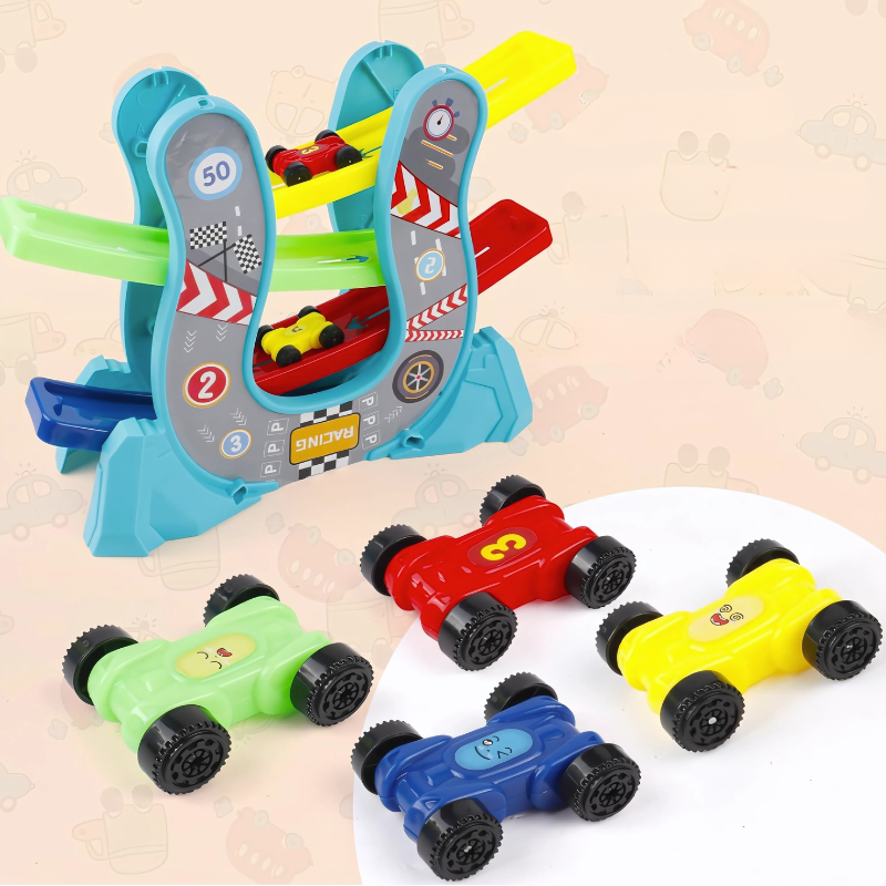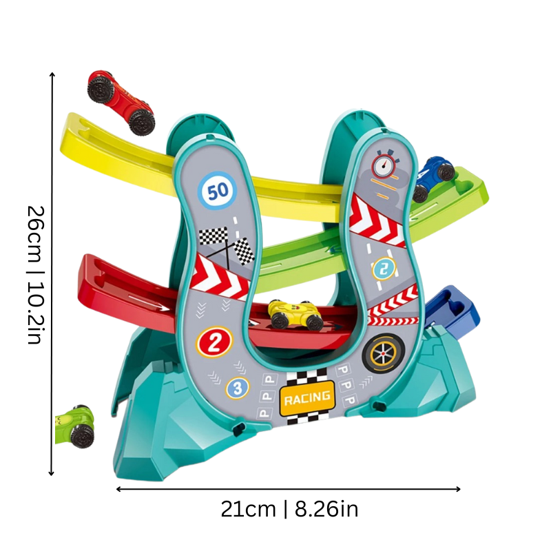 Diese Rennbahn ist für kleine Rennfahrer konzipiert, die es lieben, Autos die Rampen hinuntersausen zu sehen. Einfach ein Auto auf die Startrampe setzen, loslassen und zusehen, wie es die Bahn entlangzoomt! Die glatte Rampenstruktur sorgt für einen nahtlosen Ablauf, sodass die Kinder frustfreies Spielen genießen können. Es fördert auch die Hand-Augen-Koordination und die Feinmotorik, während es endlosen Spaß bietet.