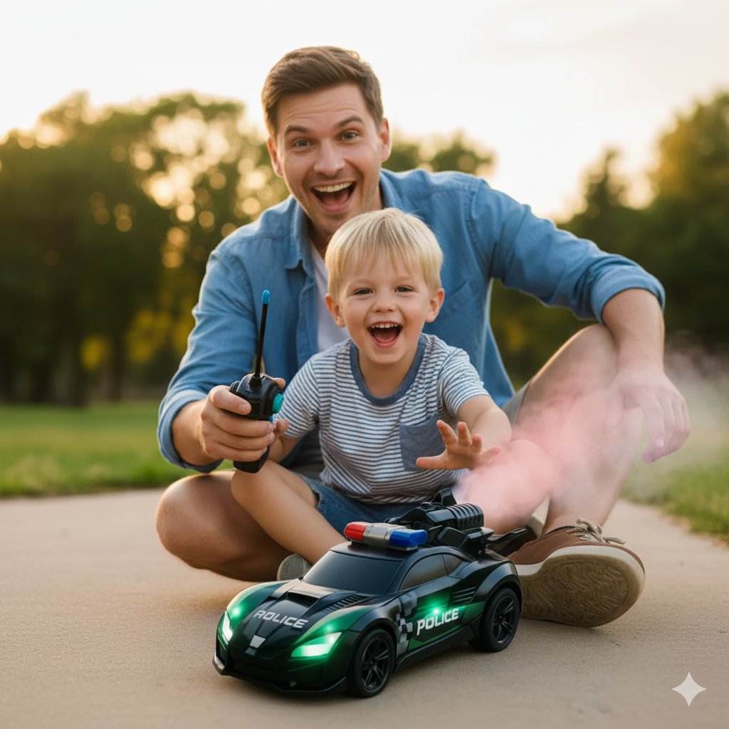 Möchtest du dich fühlen, als würdest du ein echtes Polizeiauto fahren? Fülle einfach den Wassertank und schau zu, wie Flitzen einen coolen Nebel hinter sich versprüht und einen epischen Stunteffekt erzeugt. Es ist nicht nur ein Spielzeug – es ist eine Mini-Show auf Rädern! Jeder Drift und jede Kurve sieht noch dramatischer aus, und die Kids können von dieser befriedigenden Rauchspur nicht genug bekommen. Es macht Spaß, ist aufregend und sorgt garantiert für offene Münder.
