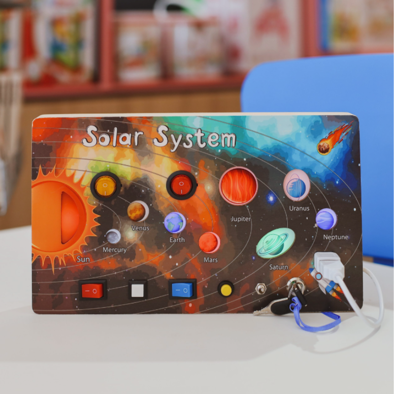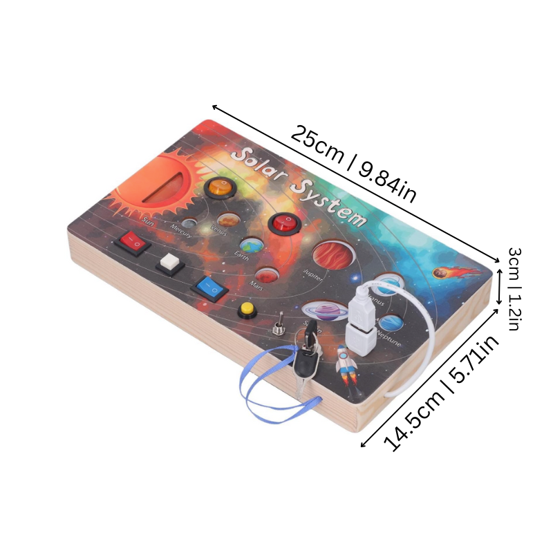 Entfache Neugier und Fantasie mit Planeto – dem interaktiven Montessori-Lernboard, das Kinder auf eine sensorische Entdeckungsreise durchs Weltall mitnimmt. Farben, Lichter und Knöpfe machen Lernen zum Abenteuer, das Kinder nicht mehr aus der Hand legen wollen.