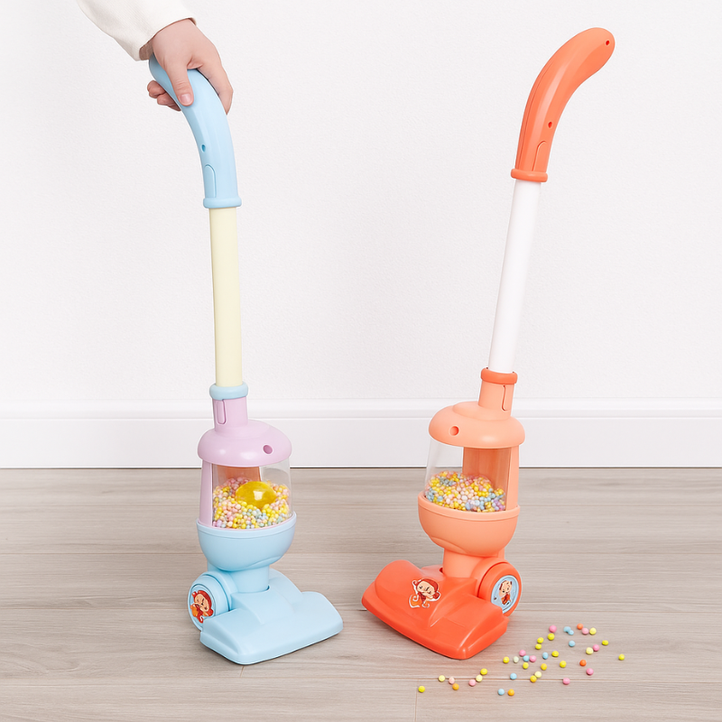- Kinder-Spielstaubsauger mit Roll- und Saugfunktion
